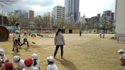 今週は、体力テスト週間でした。運動場に、50m走とソフトボール投げのラインが引いてあります。低・中・高学年ごとに種目を定め、春先からの記録からどれだけ伸びたかを計測します。