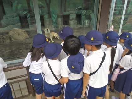 天王寺動物園に行きました。動物たちを目の前にすると大喜びの子どもたち。動物たちが近くによって来てくれたり、えさやりの場に出会えたりしました。たくさんの動物を観察することができました。友だちと食べたお弁当もとてもおいしかったですね。