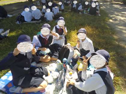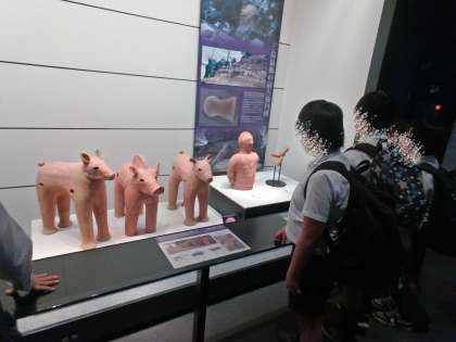 ここは、前方後円墳があり、周りが公園になっています。公園でお弁当を食べてから歴史館に行き、古墳の作り方やはにわなどを見学しました。