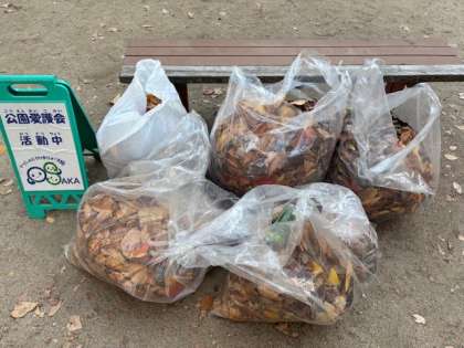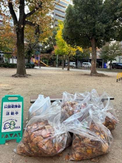 11月21日(金)に、地域の方々と江戸堀公園で清掃活動を行いました。子どもたちは、協力して地域の方々と落ち葉やごみを袋5つ分拾い、達成感に溢れていました。