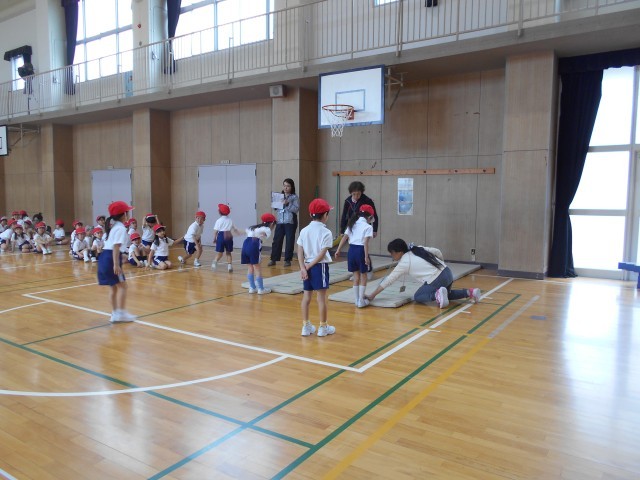 はじめてのスポーツテストでは50m走、ソフトボール投げ、立ち幅跳びを行いました。先生の話をしっかりと聞き、一人ずつよく頑張りました。