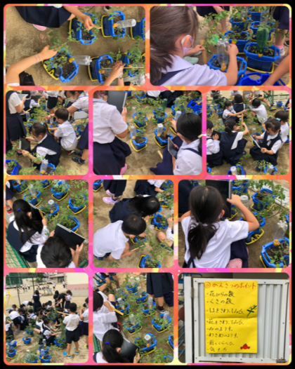 生活科の学習でトマトの観察をしました。 ものさしでどのぐらい大きくなっているのか...