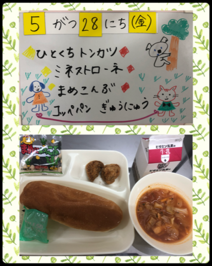 『一口とんかつ』は、給食室で衣をつけて揚げています。卵アレルギーの児童も食べるこ...