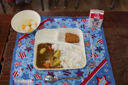 昨日から始まった給食。今日はみんなが大好きなカレーライスでした。