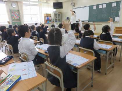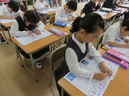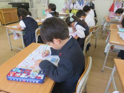 1年生は、最初は学校の決まりを教えてもらったり、学校をたんけんしていましたが、どの教室でも勉強が始まりました。まずは、ひらがなと数字の勉強です。