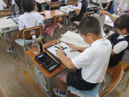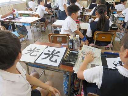 4年生が習字で『光』という字を書いていました。