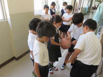 運動委員会は、月曜日と水曜日の20分休みに、学級ボールの空気入れのお手伝いをしてくれます。今日は水曜日なので、入れてもらおうともってきたボールにしっかりと空気を入れて、手渡していました。