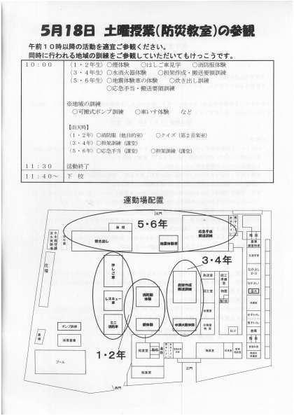 〇午前10時以降の活動を適宜ご参観ください。同時に行われる地域の訓練をご参観していただいてもけっこうです。