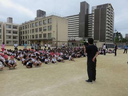 子どもたちは、担任の先生方の言うことを守り、おしゃべりもせず集まることができました。