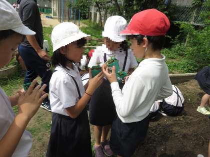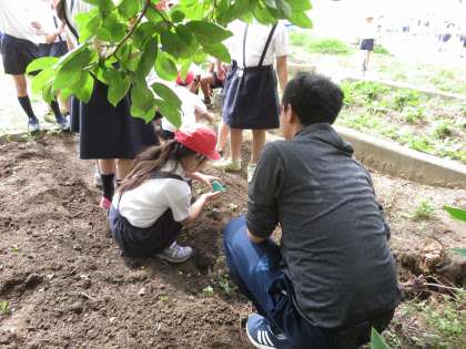 植えるときには、雑草を抜いたり、アリやダンゴ虫を見つけてはしゃいだりしている様子が見られました。