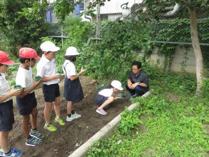 3年生が、種から育てていたホウセンカを学習園に地植えしていました。その他にはヒマワリなども植えるそうです。