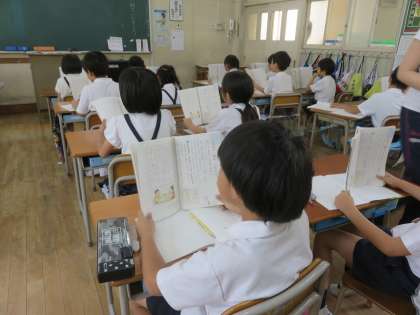 今日2年生の国語の授業では、言葉だけで絵の様子を伝える学習をしていました。