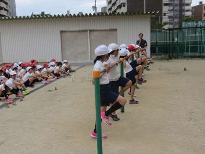 今日3年生が、逆上がりの練習に取り組んでいました。