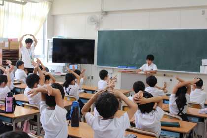 朝の時間は、給食委員会の児童が各クラスでクイズを行いました。