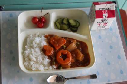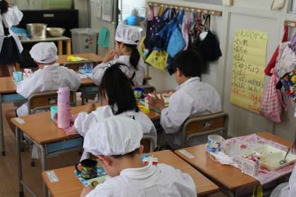給食の時間になると、給食室からは「目指すは、残食0(ゼロ)〜!!」と声が聞こえてきました。