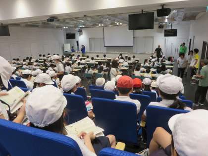 続いて5階の講堂に移動し、いろいろな説明を職員の方からしてもらいました。