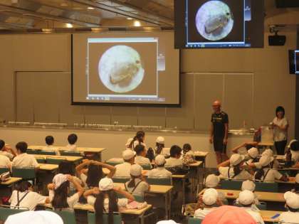 田んぼの水の中にいたミジンコが大きくテレビに映されたときには、子どもたちから「わぁ〜!」と歓声が上がりました。
