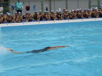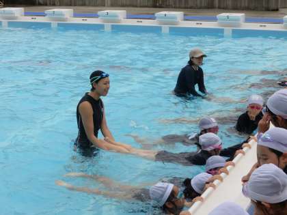 今日のプールには、西区から派遣してくれた“水泳インストラクター”の方が2名来ていただき、子どもたちに指導してくれました。