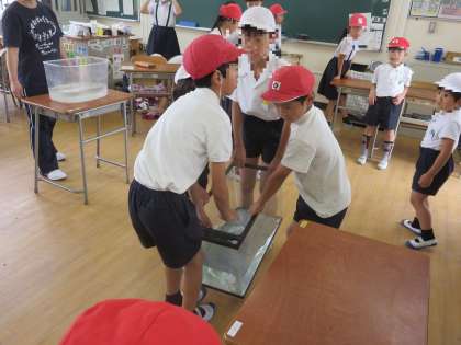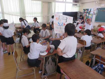 高学年が低学年の子にアドバイスをしたり、中には一緒になってポスターを描いたりしているふれ合いがとてもよかったです。