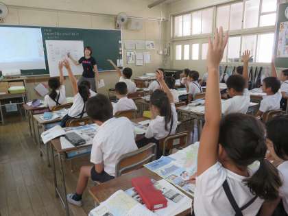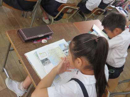 今日は3年生が社会科で、「大阪市の交通の広がり」について学習していました。