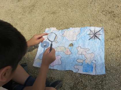 5年生が虫眼鏡を使って、紙を焼いていました。よく話を聞いてみると、「宝の地図を実物っぽく見せるために、わざと焼け跡を作ったり焦がしたりしている」ということでした。