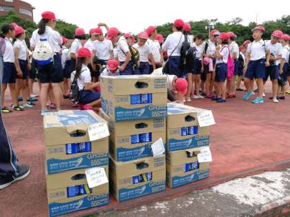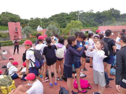 活動が終わったあとに、スポーツドリンクを飲みました。