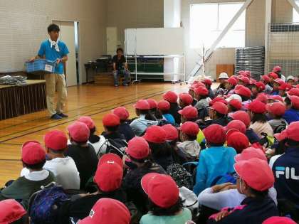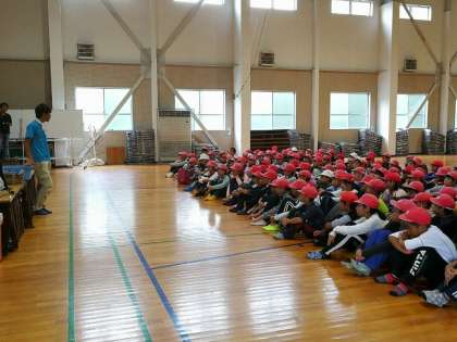まず体育館の中で、カレーライス作りの説明を聞きました。