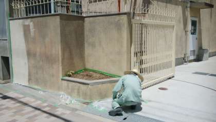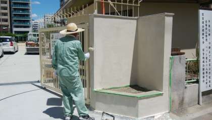本校の管理作業員が、正門、西門、北門に続き、西門横の壁のペンキ塗りを行いました。