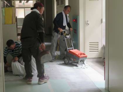 子どもたちの姿もなく少しさみしい校舎ですが、子どもたちがいない時しかできない工事を進めています。