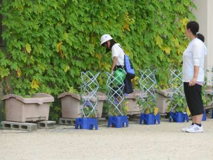 飼育栽培委員の子どもが、水やりに来てくれました。