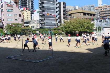 今日は5年生でした。2時間目と3時間目に、コーチのお話の後、いろいろな