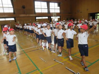 今日は2年生が運動会のダンスの練習をしていました。