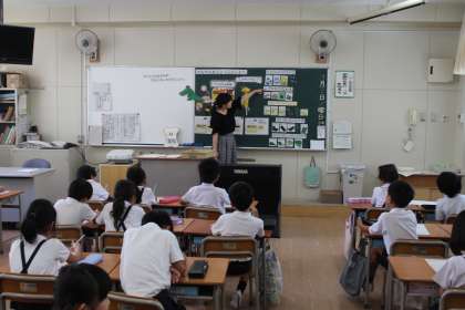 2年4組で「ほねやはをじょうぶにしよう」の栄養指導を行いました。子どもたちはしっかり話を聞いていました。