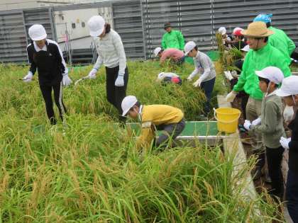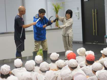 この稲刈りは、5年生が5月下旬に田植えをしたもので、自分たちで植えた苗の成長を見届けて、今日、その収穫を行ったということです。