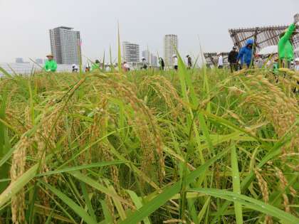 屋上では、こうべがたれた稲穂がところ狭しと群生していました。
