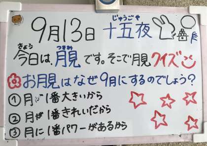 月見だんごは、子どもたちが食べやすいように、みたらしだんごにしています。