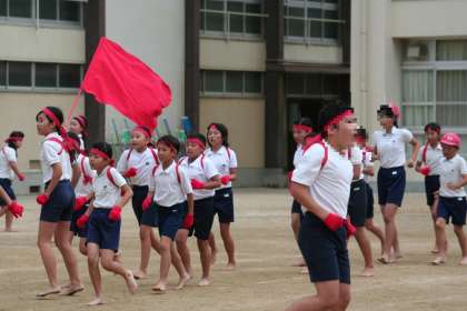 実行委員会の時間、応援団も最後の仕上げを運動場で行っていました。