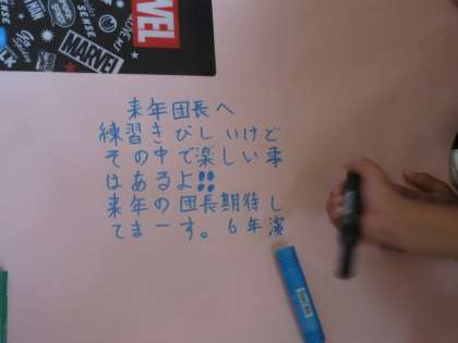 最後に模造紙に来年の応援団に向けてメッセージを書きました。この思いが来年にも届いてほしいです。
