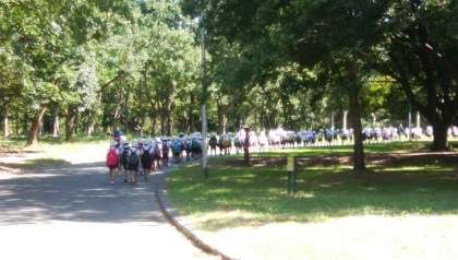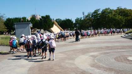 大泉緑地に着きました。御堂筋線の事故の影響で、予定より少し遅れましたが、子どもたちは元気いっぱいです。