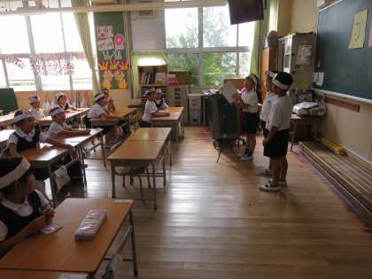 今日は、1年生の国語の教科書に載っている『かいがら』の発表会を、見学させてもらいました。