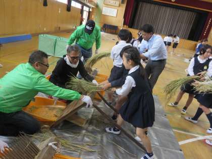 昔ながらの脱穀体験(5年) 10月18日(金)