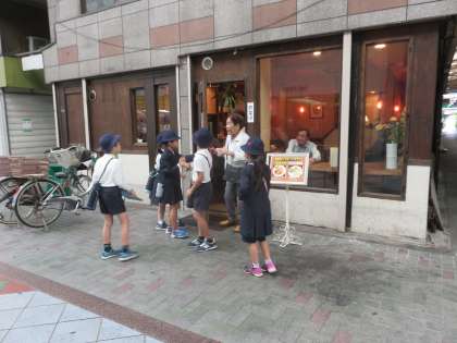 子どもたちは、グループに分かれて、考えていた質問をお店の人に言っていました。