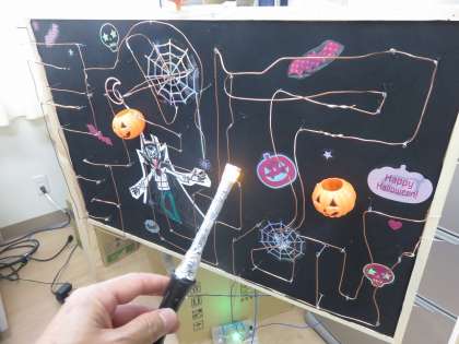 持つ棒が光ったり、水車のように回る難所があったりと、アイディア満載のイライラ棒。