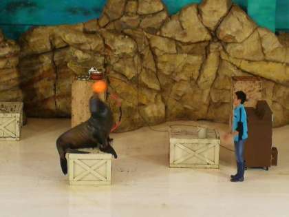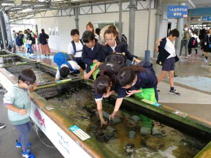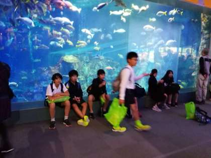 アシカショーを見たり、魚をさわったり、疲れて水そうの所にすわったり・・