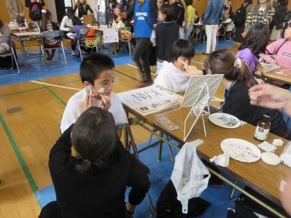 メイクの専門学校の生徒さんが、子どもたちのためにボランティアで協力してくれました。