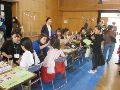 大人は、やはり恥ずかしいのですが、子どもはノリノリでメイクをしてもらっていました。