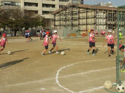 6時間目に6年生の『サッカー』の学習を参観しました。