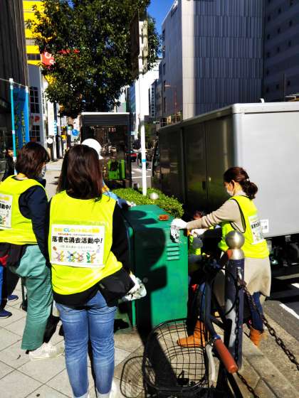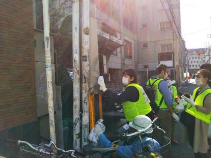 高台公園に集合後、4班に分かれて、なにわ筋から四ツ橋筋までの間で実施しました。