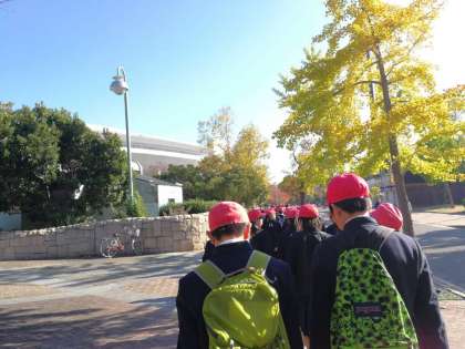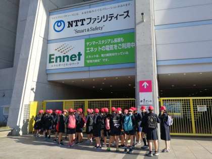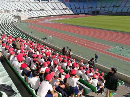 今日は6年生が、スポーツ交歓会で長居競技場に来ました。