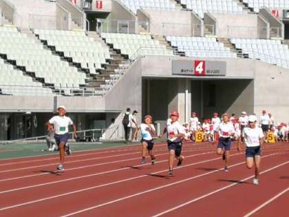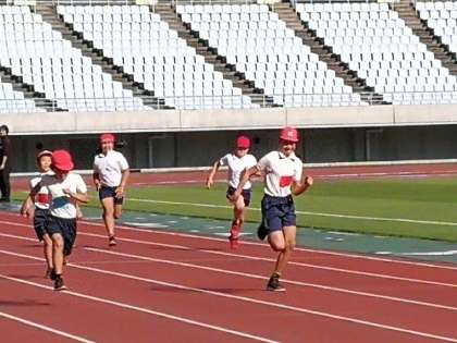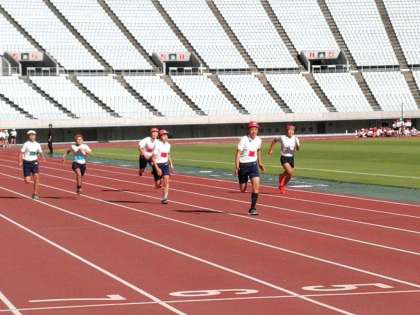 開会式と準備体操をした後に、100m走の記録会が始まりました。